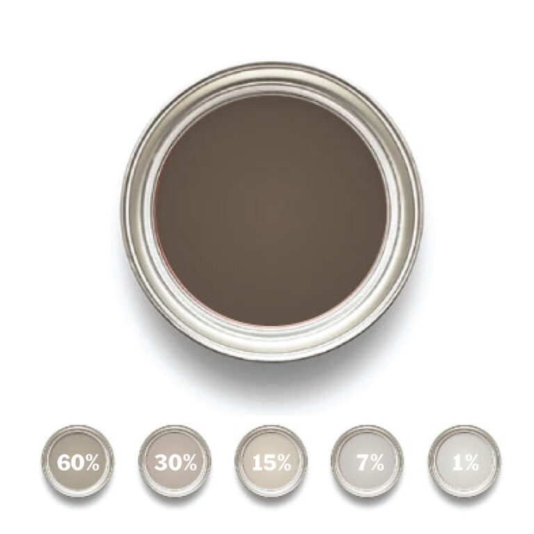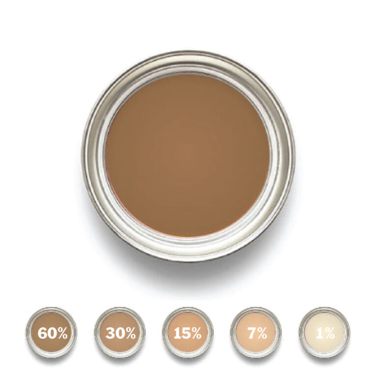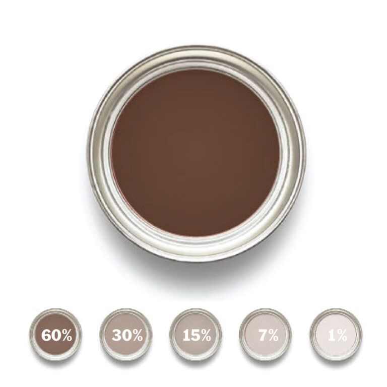 100% it is dark gray-brown, broken with white it is warm gray. It is available in the following percentages: 2%, 7%, 15%, 30%, 60%.