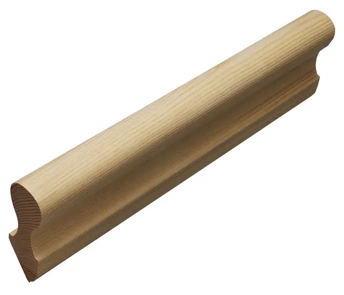 Classic profile planed handrail for 18th and early 19th century stairs. Cut to the appropriate length and nailed with hand-forged nails directly into the wall. No other fasteners are needed. Nice to hold. The original is set up in the steep staircase to the upper floor in Nästgårds.