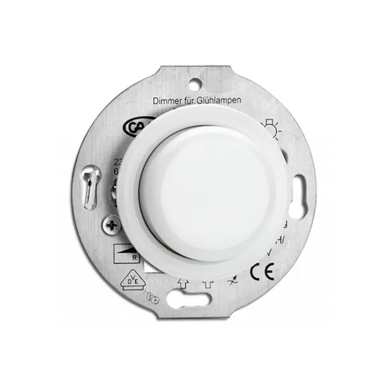 Insert for dimmer switch in white porcelain for recessed mounting. Works with both dimmable LED lamps, ordinary incandescent lamps and low-energy lamps.