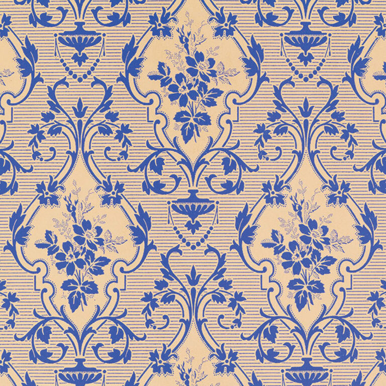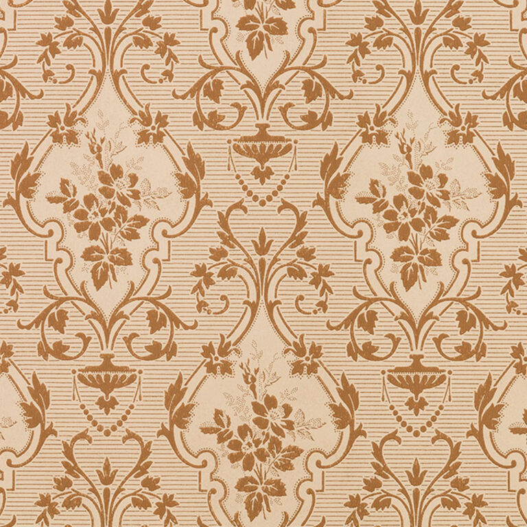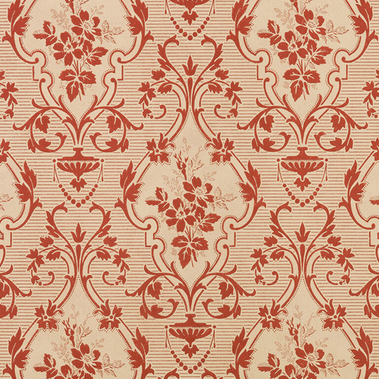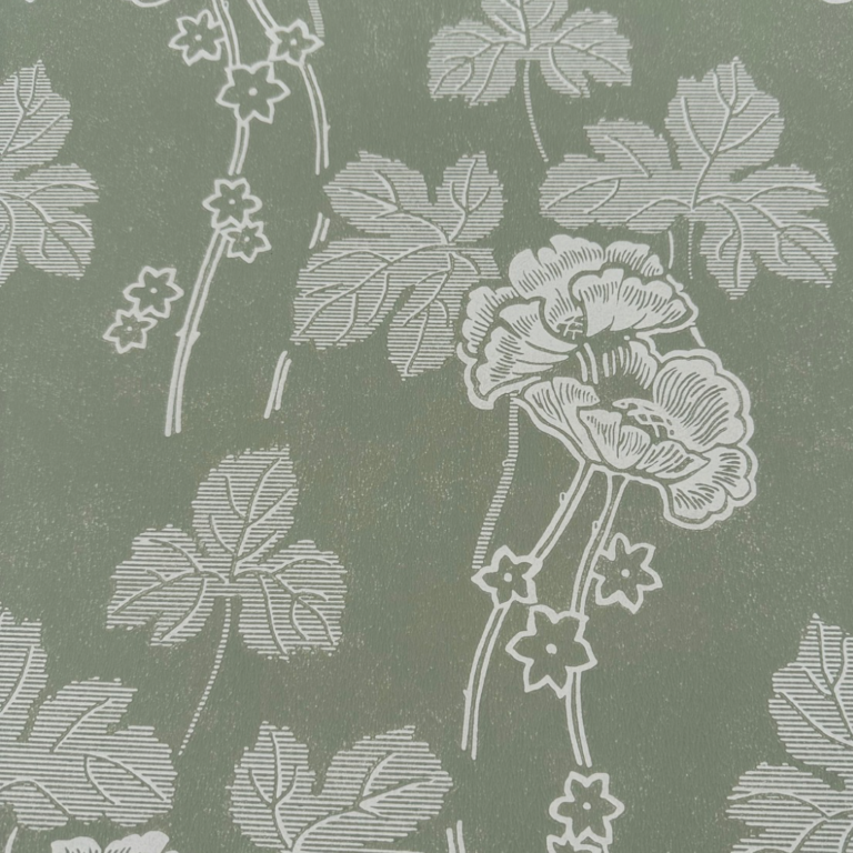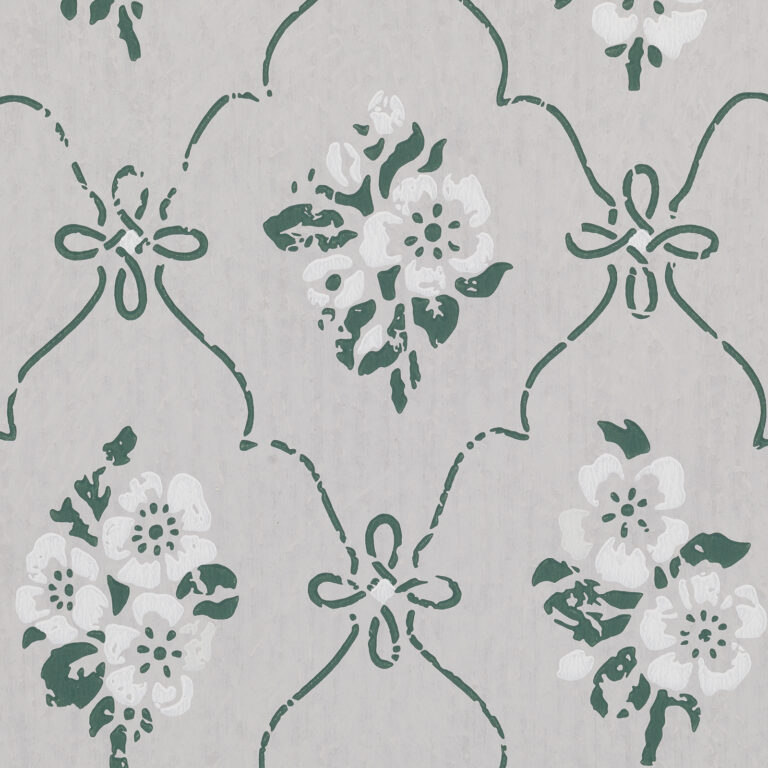 Wallpaper with a floral pattern from the 1920s in a modified vernacular style. Patterns of flowers, garlands and bows. The original is a wallpaper find that was found during the dismantling and relocation of our exhibition building Nästgårds in Gysinge.
