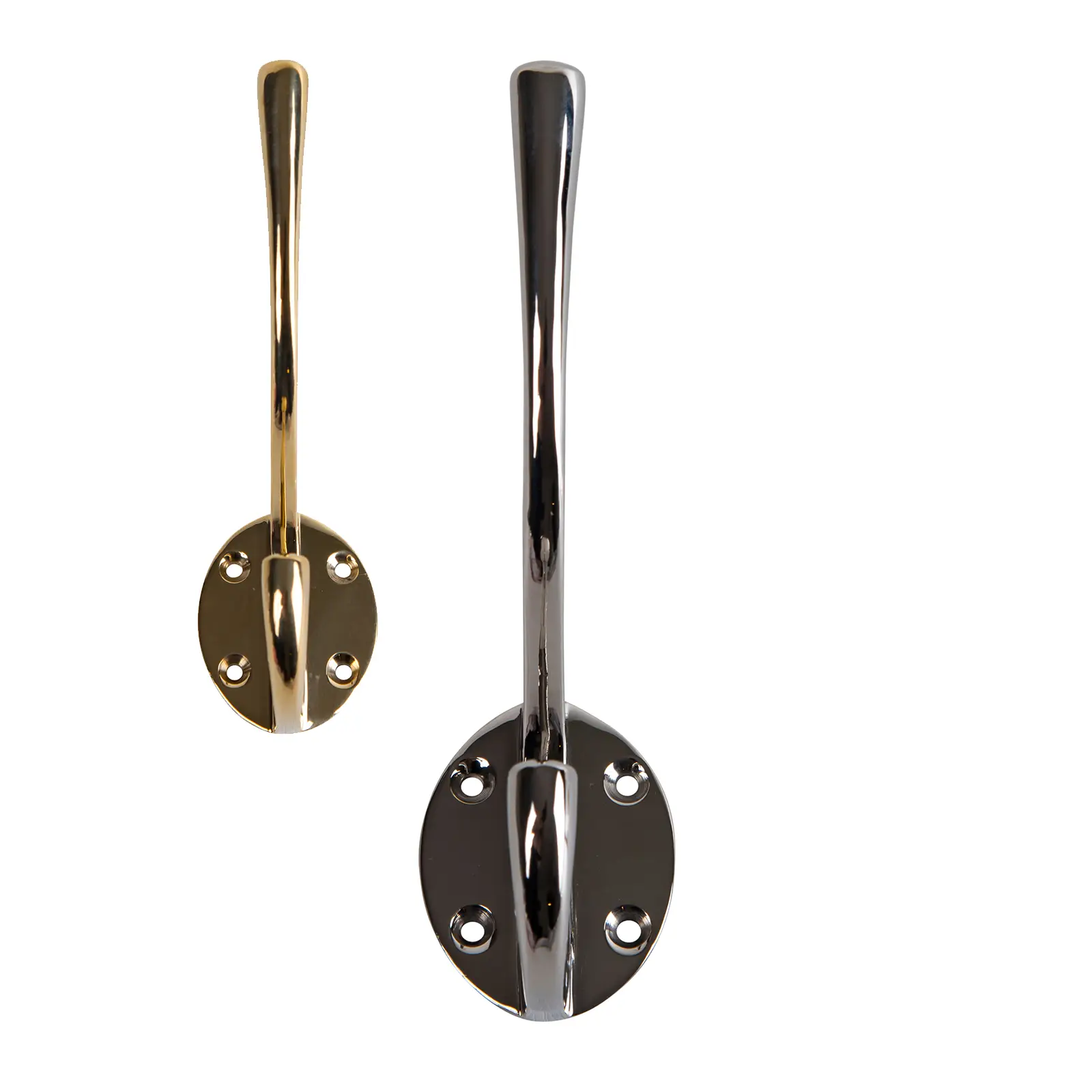 Simple coat hook in nickel-plated or untreated brass. Period 1920 – 1965. Screws included.