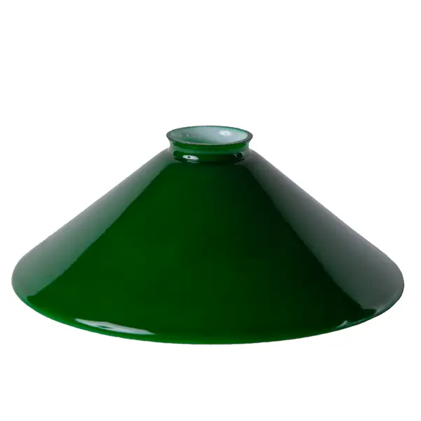 Hand-blown, green lampshade in opal glass for cobbler lamps, elevator lamps, wall lamps, etc. The shade is deep and prevents the bulb from glaring, which is common in flat shades.