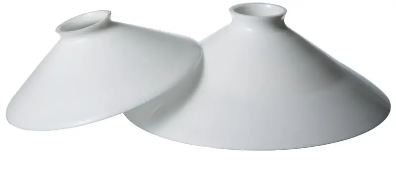 The glass is mouth-blown opal glass, formerly called milk glass. Commonly available in white color. Opal glass diffuses light softly, effectively and evenly. The surface of our glass is glossy, but can also be satin or matte.