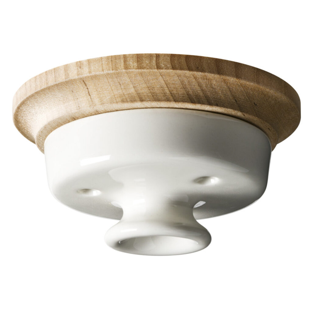 Angled simple foot lamp holder made of glazed porcelain. Black color. Intended for indoor wall at 15° angle. Diameter of base approx. 70 mm. Base height 63 mm. Socket E27, max 100W, IP20.