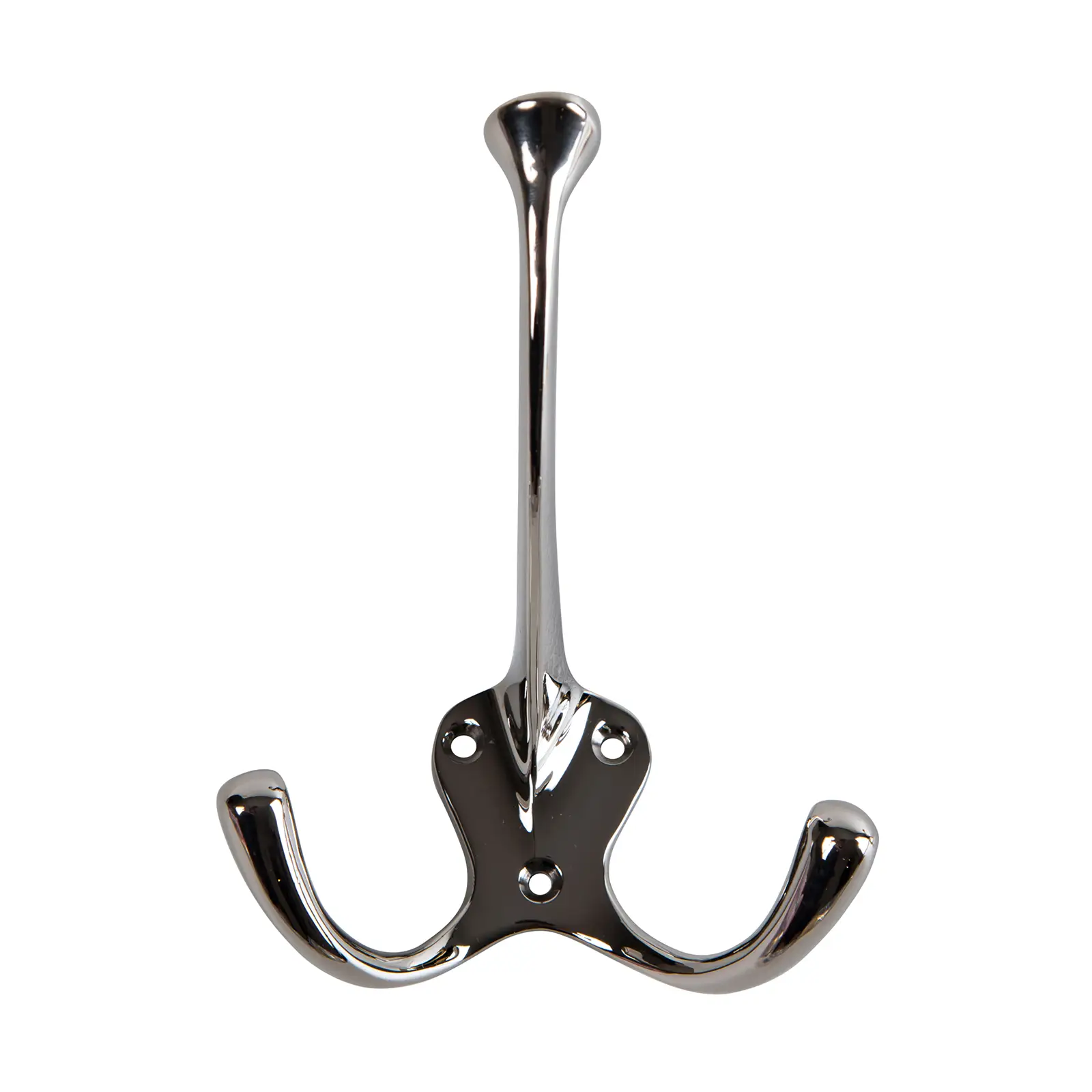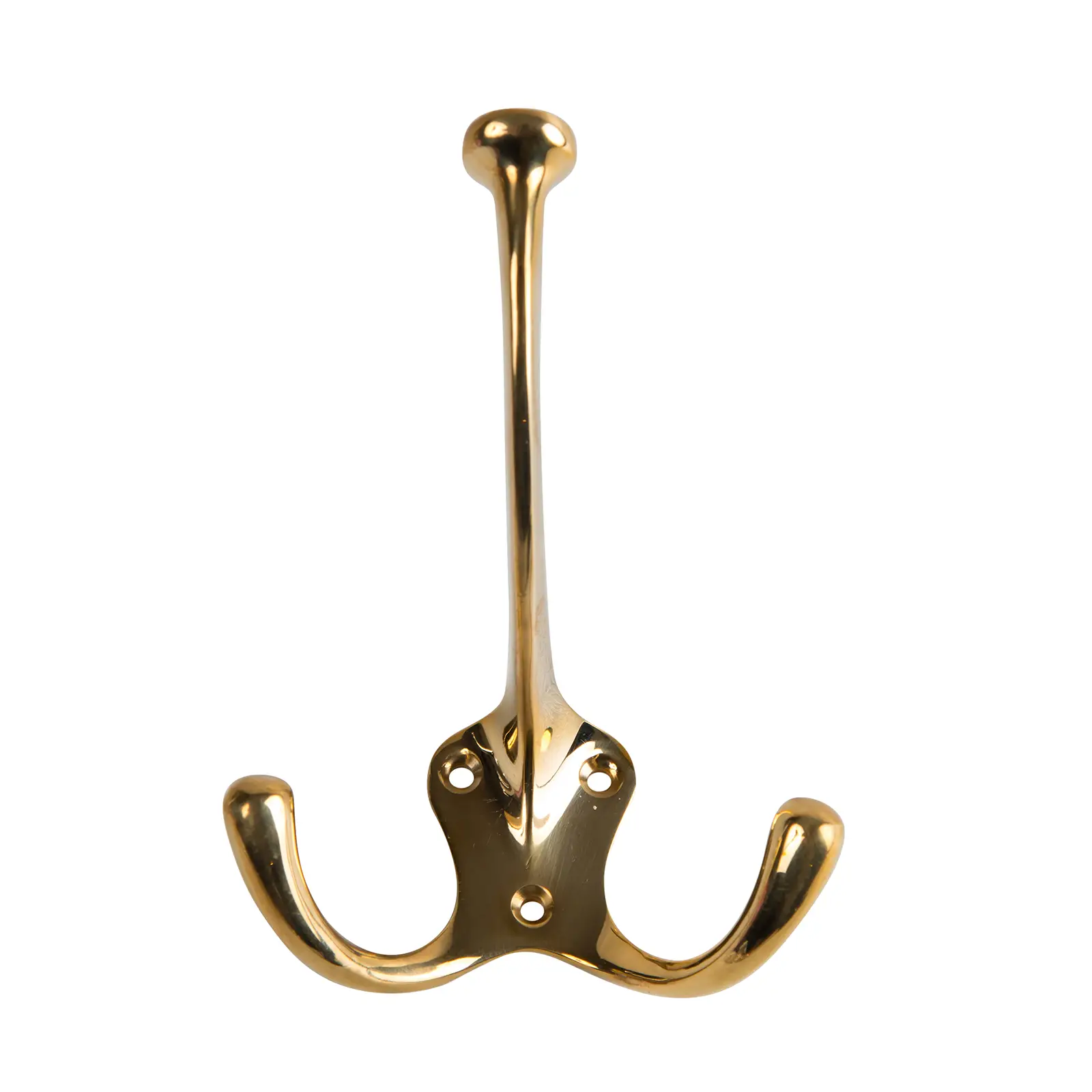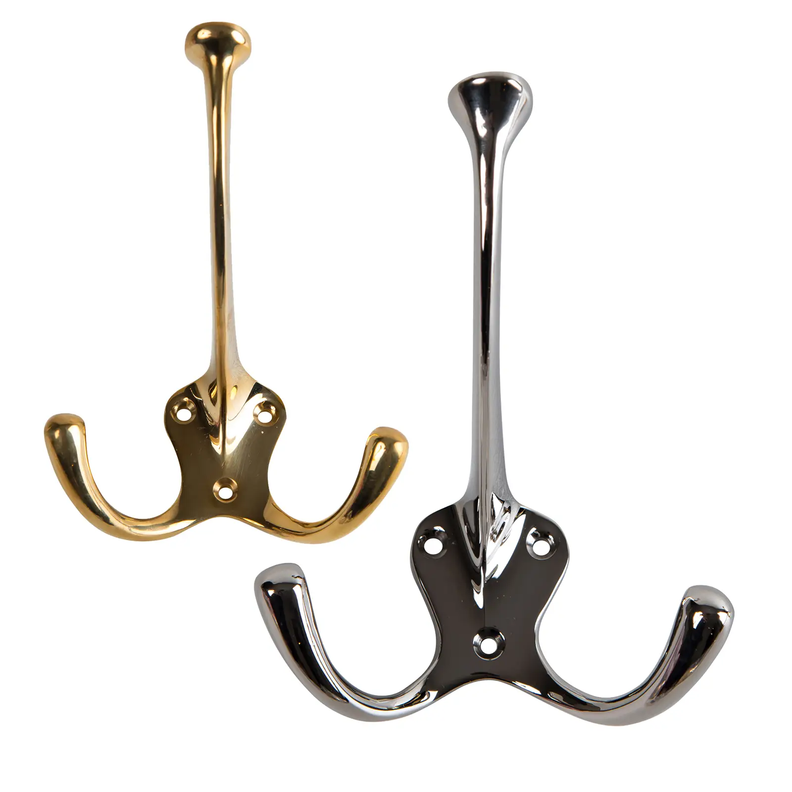 Classic clothes hook from the period 1920 to 1965. Two smaller hooks and a longer hook in the middle. The hook is available in untreated brass or nickel-plated brass. Screws are included.