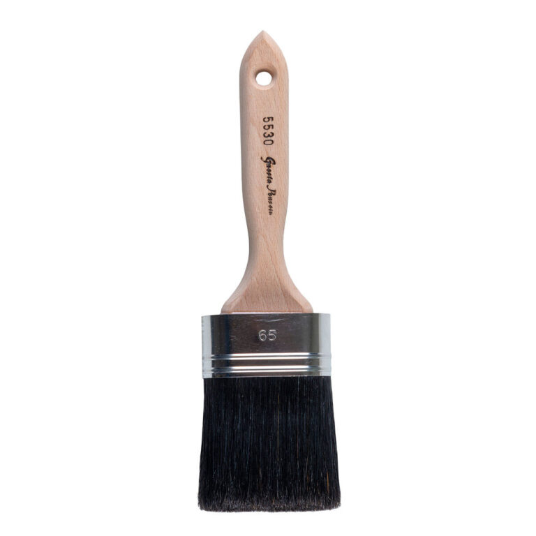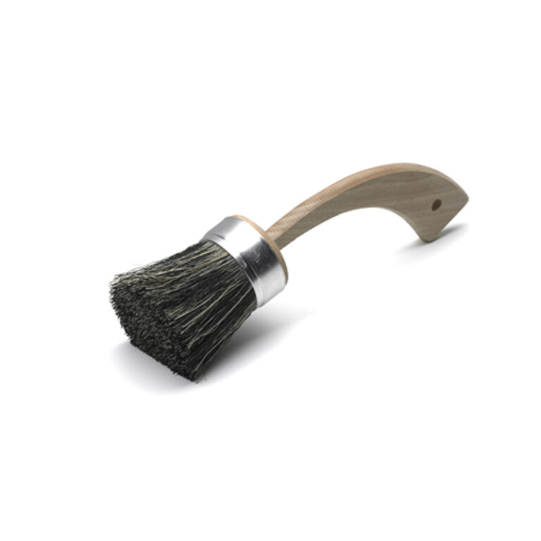 Horn saw for mud painting on timber walls. Correct handle angle and stiff bristles. The classic brush for mud painting on timber walls. For board-lined houses, the painting brush is often more suitable.