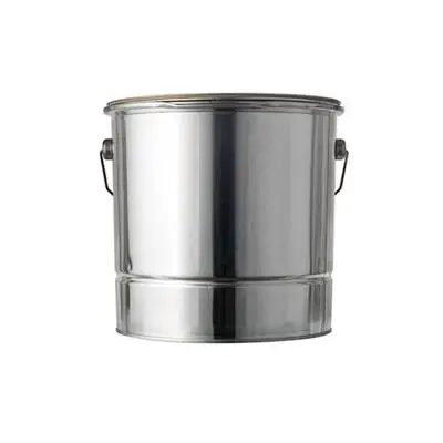 Practical tin can with handle and lid for mixing paint and storing leftover paint or oil.