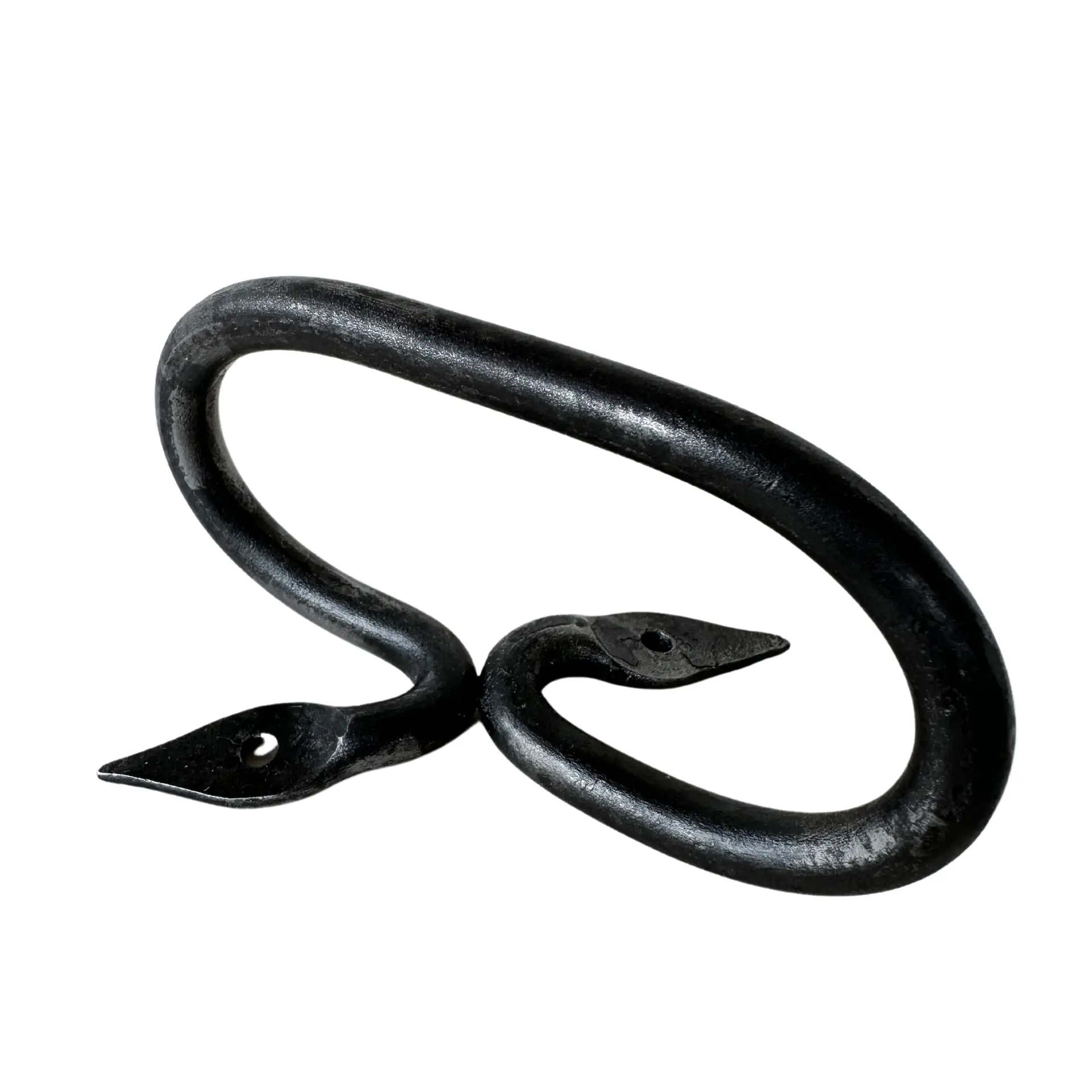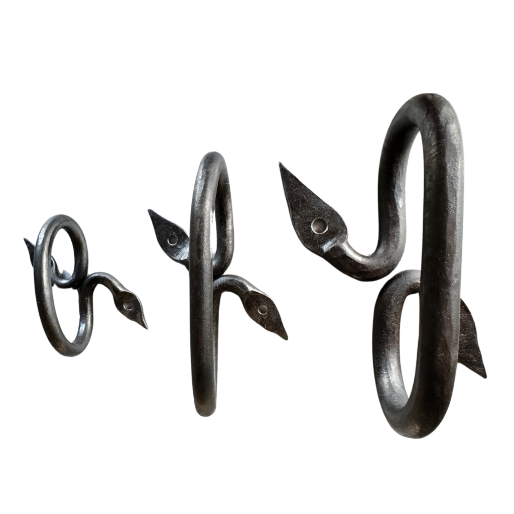 Hand forged linseed oil fired iron in the shape of a snake. Originally from a farm in Åsgarn, southern Dalarna. Assembled with two hand-forged nails in each bracket. Can be placed horizontally or vertically.