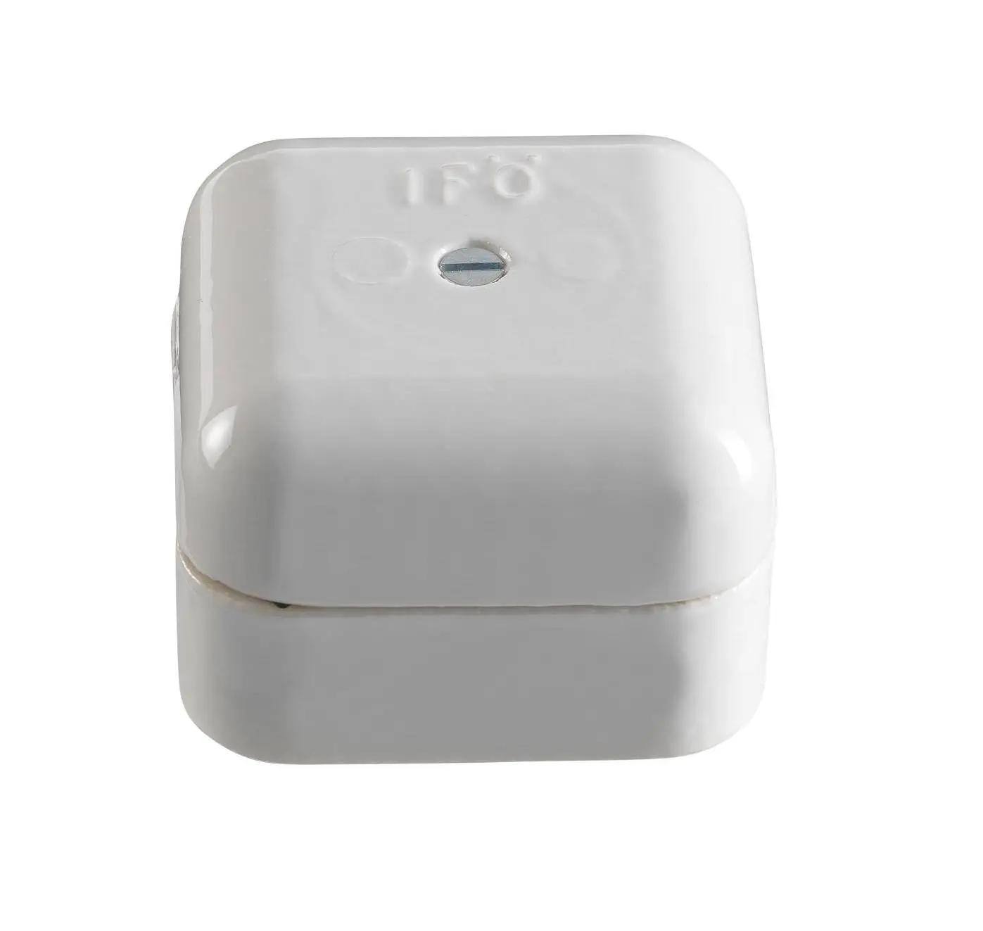 Square junction box in white porcelain for surface mounting. Newly manufactured in a classic model.