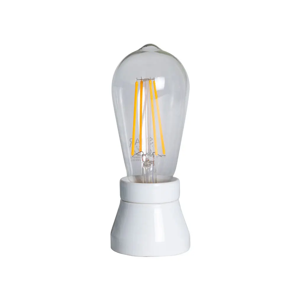 Decorative LED lamp. As a worthy replacement for the beautiful old carbon wire lamp, we have a series of LED lamps (light-emitting diodes) in clear glass and visible filament. These lamps are both efficient and decorative and give off many hours of warm, yellow light. Given their energy efficiency, it could be said that LEDs waste light but are economical in terms of energy consumption.