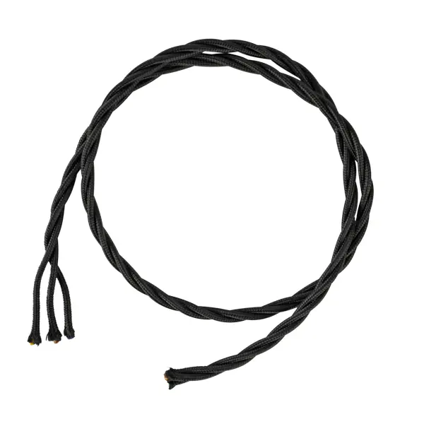 Black twisted textile cable in old-fashioned style. Approved double insulated and 3-wire (grounded).