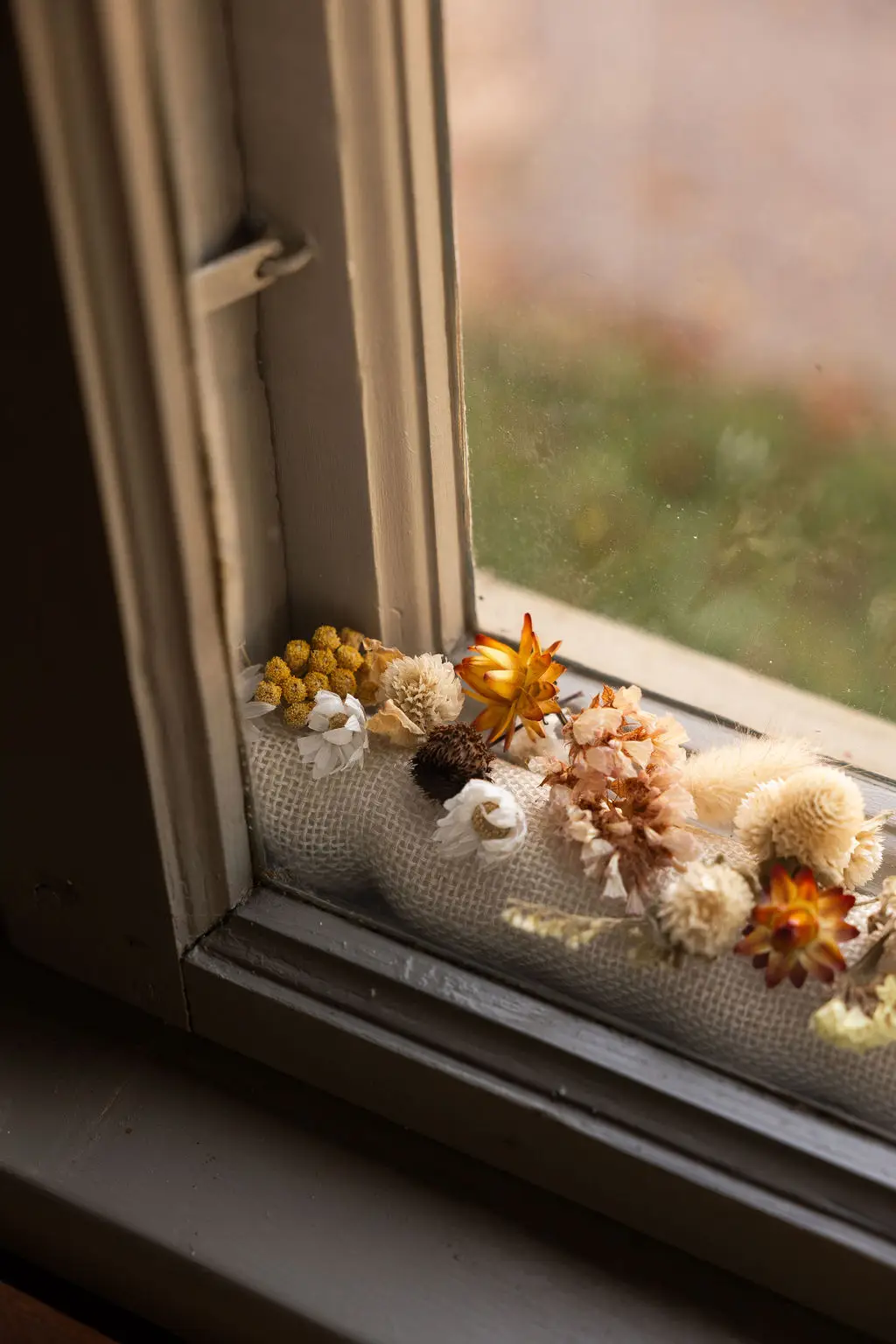 Window wadding is placed between the outer and inner sashes of windows that have loose interior windows. Our wadding has been manufactured in an unbroken tradition since 1902 and is a well-known quality for anyone living in old houses. The wadding is inserted when the windows are sealed for the winter. It is considered a draught excluder, which may be true, but its main function is probably decorative. The wadding has a backing of thin paper and is shaped like a roll in the window. If you want, you can stiffen the roll by first rolling it up around a piece of newspaper. The wadding tends to shrink due to the moisture between the window sashes. If you want to decorate it further, you can place evergreens or other dried plants on top of the wadding.