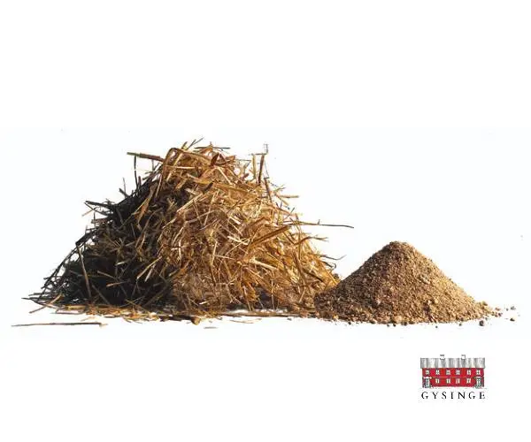 Rötad och hackad linhalm för armering av lerkliningsbruk på gammaldags sätt. Blandas i lerbruket i samband med tex lerklining av väggar inomhus. Armerar bruket och gör det mer tåligt mot husets naturliga rörelser.