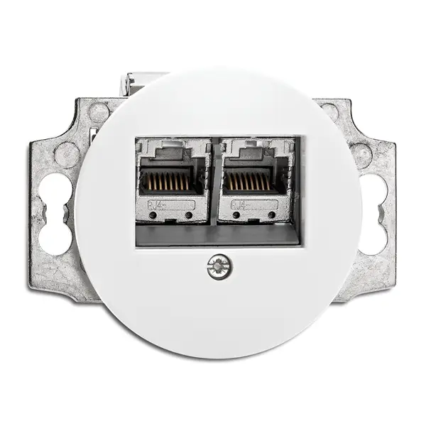 Nätverksuttag i porslin för två RJ45.Kombineras med täckkåpa i porslin för nätverksuttag.
