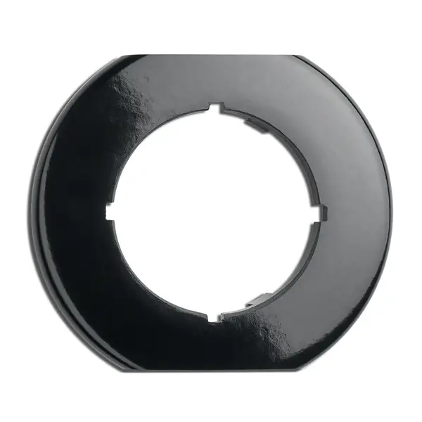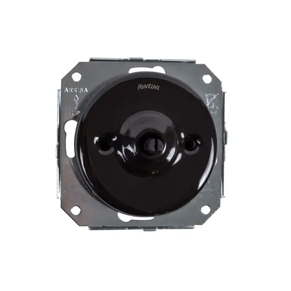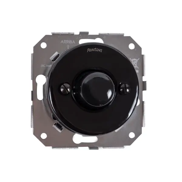 Infälld återfjädrande dubbeldimmer i svart porslin utan ram och vred i ett utförande som var vanligt förekommande i Europa under 1900-talets första hälft.