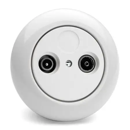 Antennuttag av porslin. Vit porslin. Bygger 13 mm utanpå vägg.
