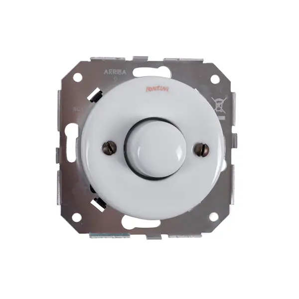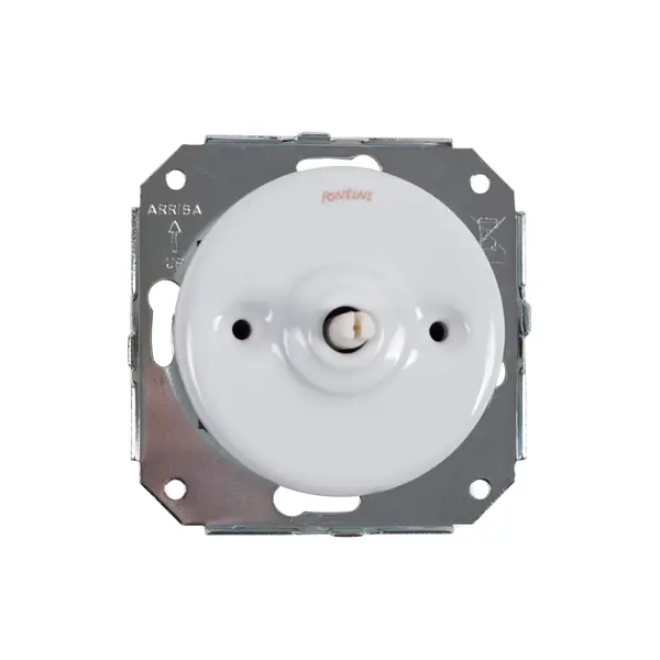 Infälld återfjädrande dubbeldimmer i vit porslin utan ram och vred i ett utförande som var vanligt förekommande i Europa under 1900-talets första hälft.