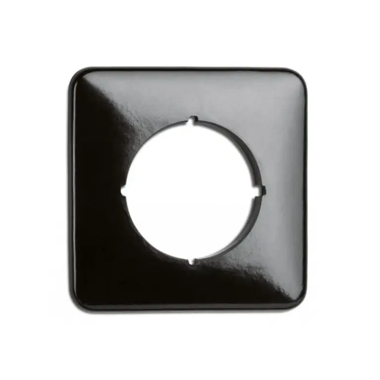 Bottenplatta till våra svarta utanpåliggande strömbrytare och vägguttag i de fall de monteras på brännbart material, till exempel papperstapet eller trä.