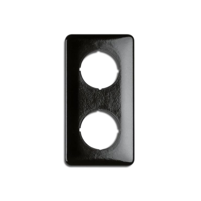 Dubbelram i svart bakelit för vägguttag eller strömbrytare. Mått 157 x 82 mm.