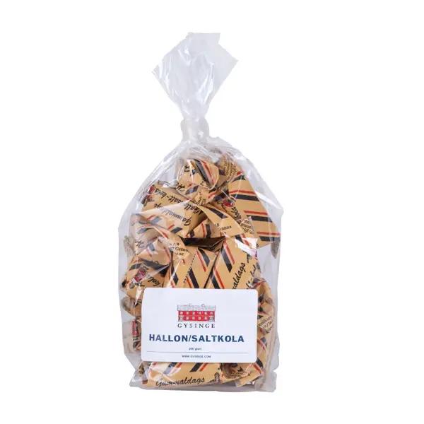 Gammaldags kola Hallonsalt. Smaksatt med extra mycket salmiak, ett måste för den medvetne godisgrisen. Förpackad i liten cellonfan påse.