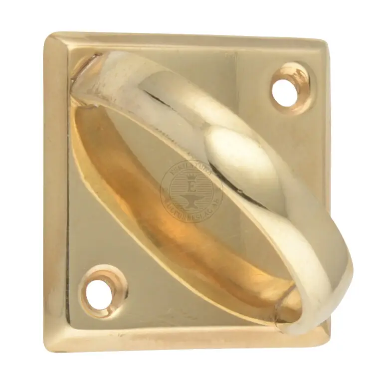 Handtag av sandgjuten mässing till luckor och lådor. Nygjuten modell efter förlaga från andra hälften av 1800-talet och början av 1900-talet. Skruvas fast med spårskruv av mässing. Kan monteras både liggande och stående. Passar därför både på lådor och luckor.