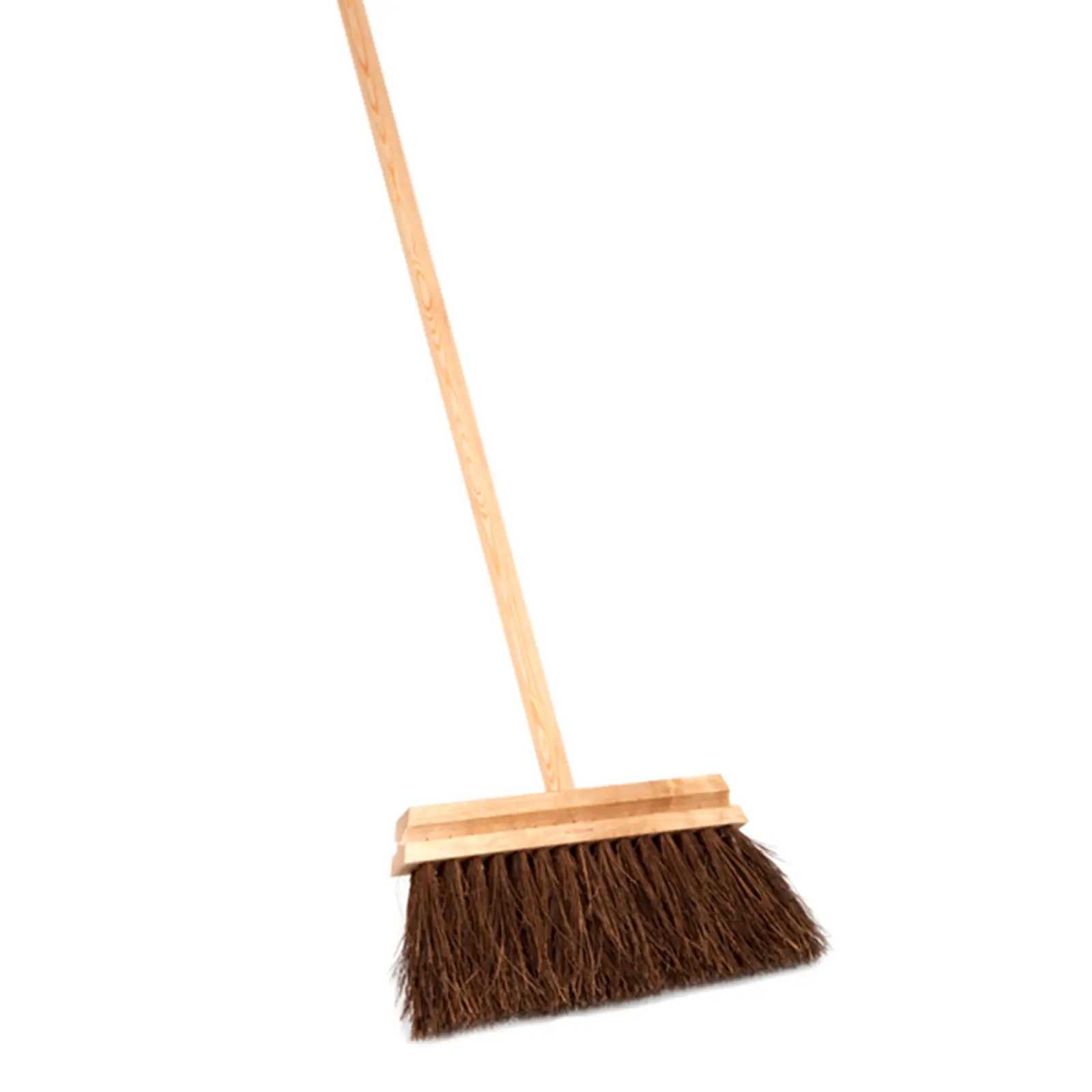 Brokvast i björk och bassine. Behändig kvast att sopa både grus, löv och snö med.
