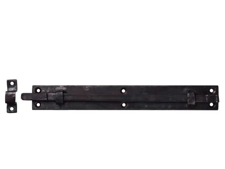 Vinkelslutbleck av järn. Till lås av sekelskiftestyp 1900. För låskolv max 12 x 40 mm. Passar både höger- och vänsterlås.