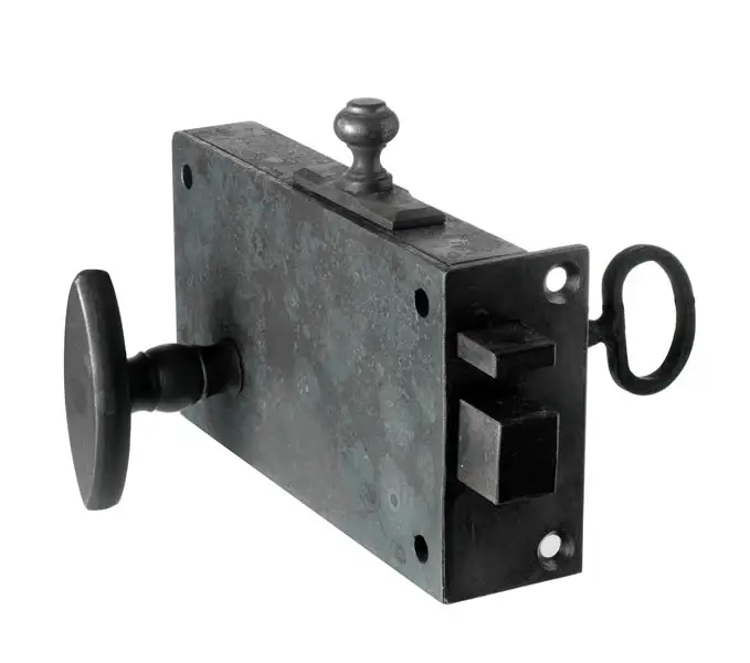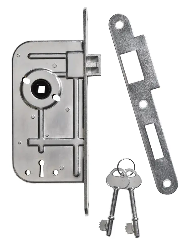 Gediget kammarlås av typ 1700-tal och tidigt 1800-tal. Högsta kvalitet. Finns i både höger- och vänsterutförande. Försett med nattregel, d v s kan låsas från insidan i ett rum, utan att nyckeln behöver tas ur.