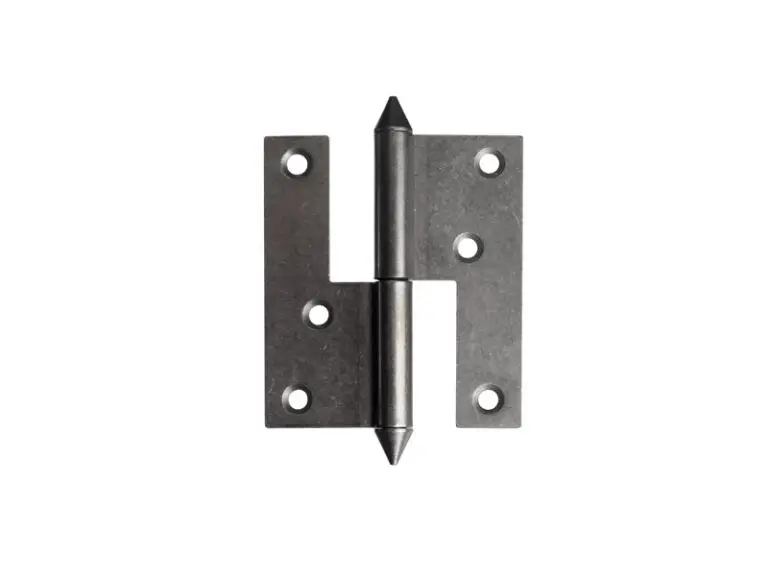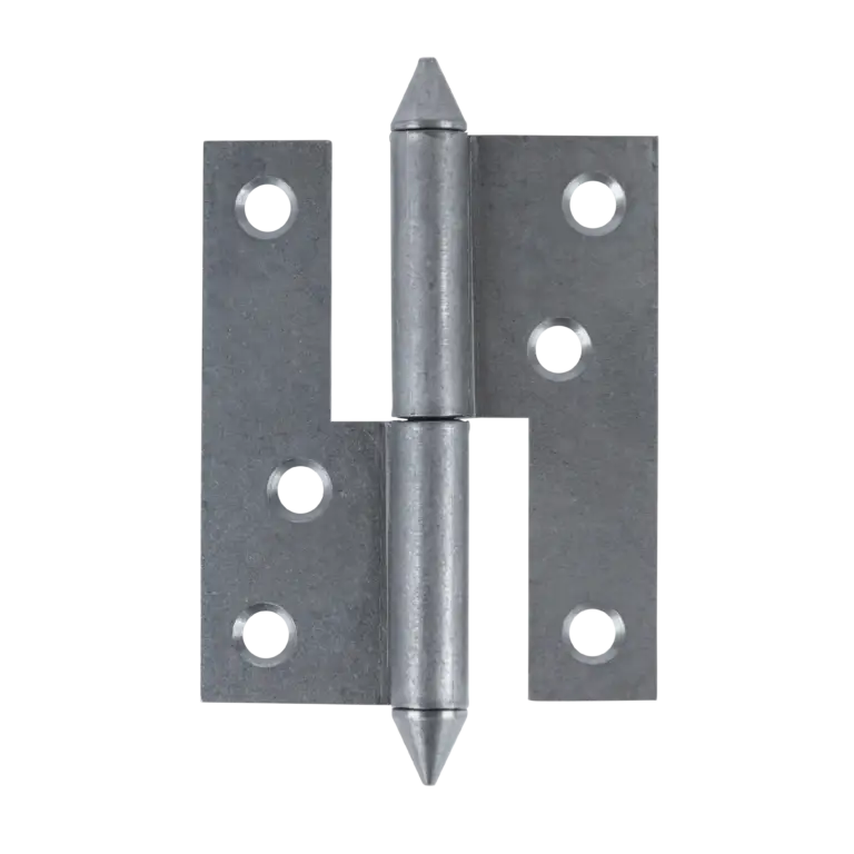 Gediget stolpgångjärn med kon, vänster. Lämplig till skåp- och garderobsdörrar.