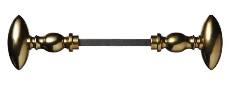 Svarvat dörrvred i mässing. Kan användas både till ytterdörrar och rumsdörrar. I första hand tänkt till pardörrar. Till vredet finns passande rosetter och nyckelskyltar i mässing.