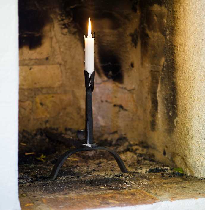 Vår eldhund kan, beroende av spisens storlek, användas ensam, eller placeras i par. Den är också mycket dekorativ bara som en fristående ljusstake. Smidet är grovt och rustikt till sin karaktär, mer bondsmide än finsmide, men av högsta svenska klass in i minsta detalj.
