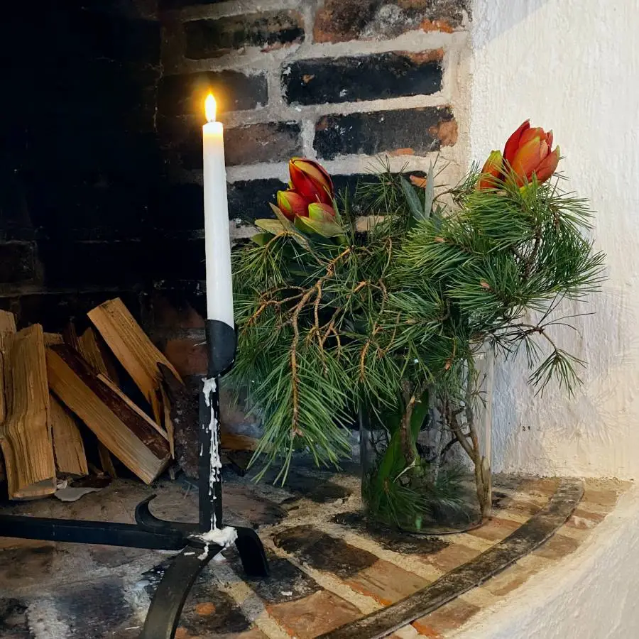 Vår svenska eldhund är smidd efter en förlaga från tiden omkring år 1800. Det unika med modellen är att den har ett ”ljushuvud”, alltså en hållare för levande ljus, som kunde stå tänt och skapa mysig stämning fast brasan inte var igång. Denna lilla detalj gör vår eldhund till extra dekorativ när den står vakt och lyser i den öppna spisens annars bara sotiga och svarta hål. Ljushuvudet är dessutom mycket praktiskt att bränna ljusstumpar i.