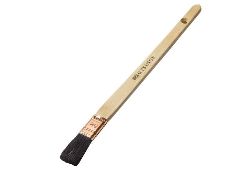 Många kunder har frågat efter en speciell pensel för att schellackera kvist. Problemet är att man inte vill använda vanliga, dyra penslar till detta, för att de skall rengöras separat i rödsprit och inte i terpentin. Och så vill man ha en lång pensel så att man även når till takpanelen. Schellackpenseln är svaret på dessa önskemål.