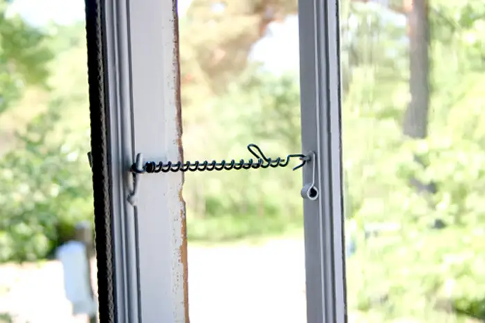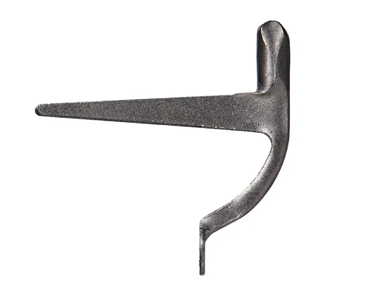 Uppställningshake i stabilt trådarbete. Gör det möjligt att ställa upp ett fönster från »lite på glänt« till halvöppet. Gammal modell från Torsåker, Gästrikland.