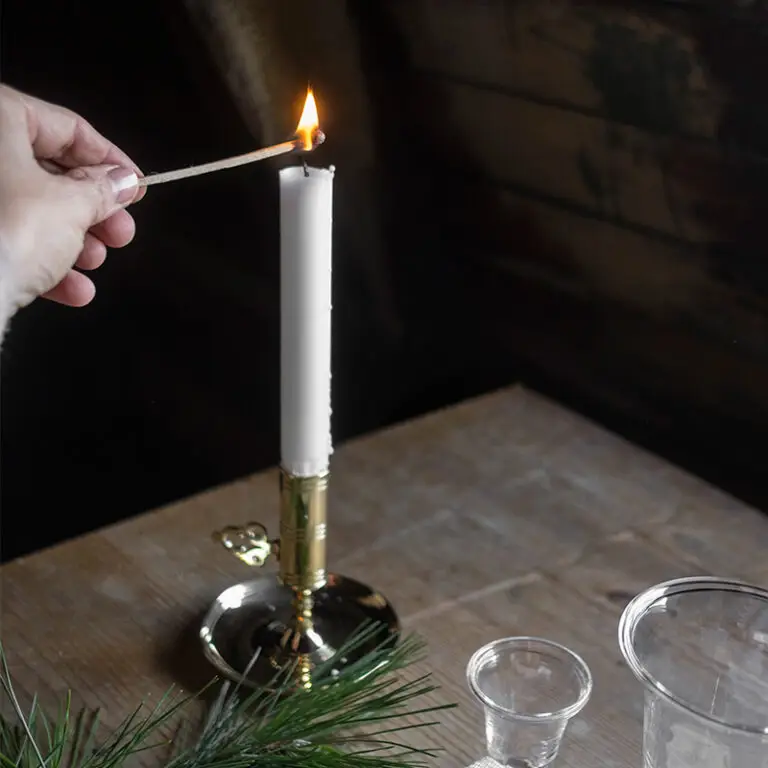 Traditionellt handstöpt grenljus. När ljusmassan är varm stöper och formas grenljuset med varsam hand. Den långa brinntiden och den vackra lågan är en samverkan mellan rätt blandning av stearin, paraffin, vax och vekgarn.