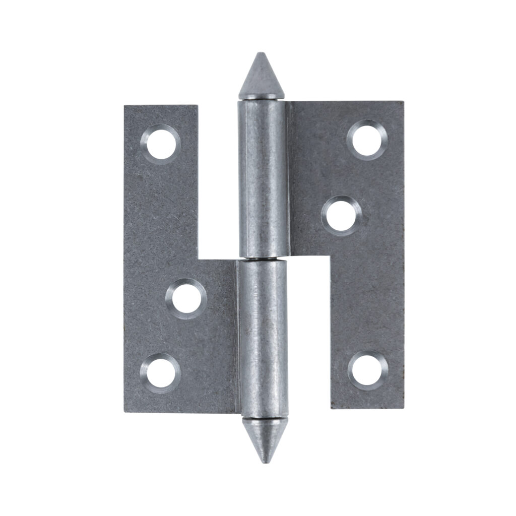 Gediget stolpgångjärn med kon, vänster. Lämplig till fönster, skåp- och garderobsdörrar.