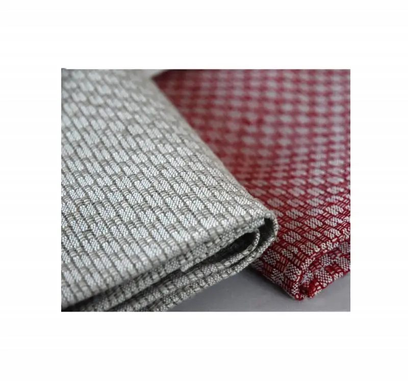 Handdukarna från Gysinge har en intressant historia. I Gysinge fanns till 1980-talet ett sjukhem som drevs av landstinget. För att skapa sysselsättning åt de drygt 60-talet psykiskt sjuka som vistades på hemmet fanns bland annat en vävstuga. Många av de intagna kvinnorna tillbringade lång tid i vävstugan, som gav dem en meningsfullare tillvaro – och landstinget ett tillskott i kassan. På hemmet vävdes riktiga tyger, inte terapiarbeten i modern, negativ bemärkelse. Bland annat vävdes alla gardiner, dukar och servetter till återinvigningen av Gysinge herrgård på 1960-talet. Det här handdukstyget är en så kallad sållväv (mönstret ser ut som ett såll – men framträder först efter tvätt!), vävt på beställning till ett pensionat i Järvsö på 60-talet. Vävsättet kallas också fattigmansdräll, ett vävsätt som åstadkom ett tyg som ser mycket mer exklusivt ut än vad det egentligen är. Vävsättet är mycket gammalt och ger ett högabsorberande och slitstarkt tyg, i alla tider använt till handdukar och dukar. Vackrast blir tyget om man manglar det, då framhävs de blanka linnetrådarna i inslaget, mot den mattare varpen av bomull. Kvalitén blir bara skönare ju mer man sliter tyget.