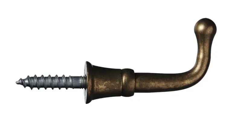 Skruvkrok i sekelskiftesmodell av gedigen mässing med skruvdel av järn. Vanlig förr i tiden som klädkrok i rum och tamburer, som handdukshängare i kök o.s.v.