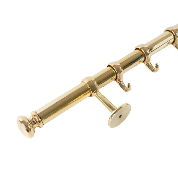 Kökspisstång med rejäla krokar för köksredskap, grytlappar, kastruller mm. Kan också användas som handdukshängare i kök, eller i badrum. Modellen var vanlig från sent 1800-tal fram till 1930-talet. Högsta kvalitet.