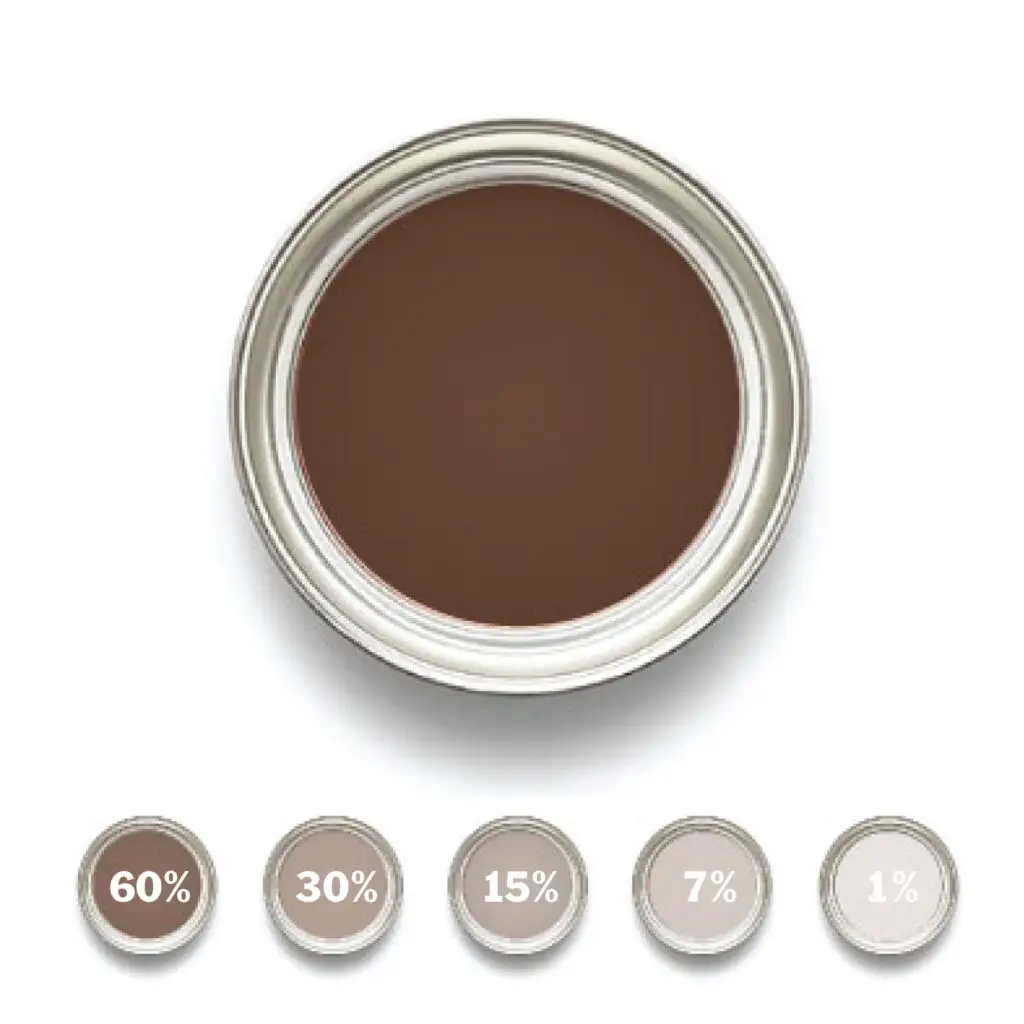 Brun kulör som sällan används hundraprocentig, men en klassiker i brytningar med vitt. Ger tillsammans med vitt, en gammalrosa kulör, utan dragning mot vasst skärt.