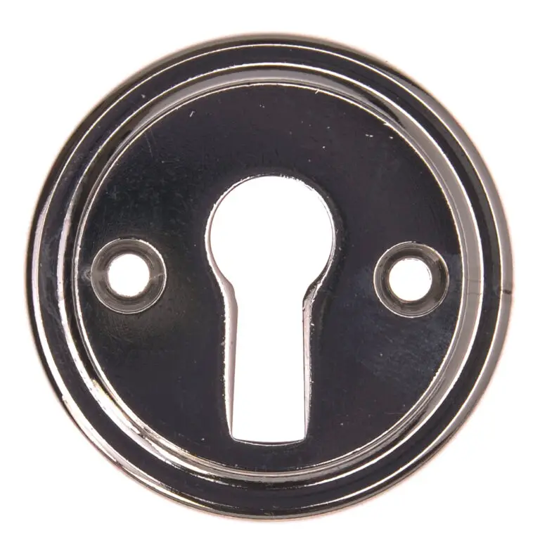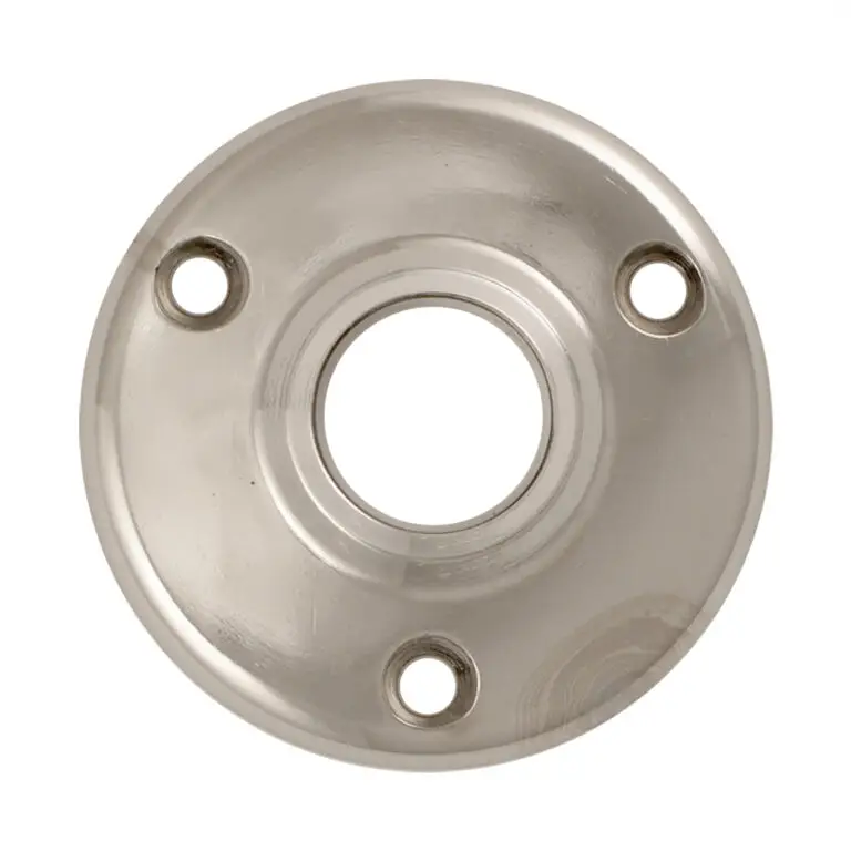 Rosett i järn av ordinär 1800 och tidig 1900-talsmodell. Passar till våra dörrvred  men är även användbara vid komplettering till äldre trycken och vred. Med de nya måtten passar våra låsbeslag även till de flesta moderna lås med genomgående skruv osv.