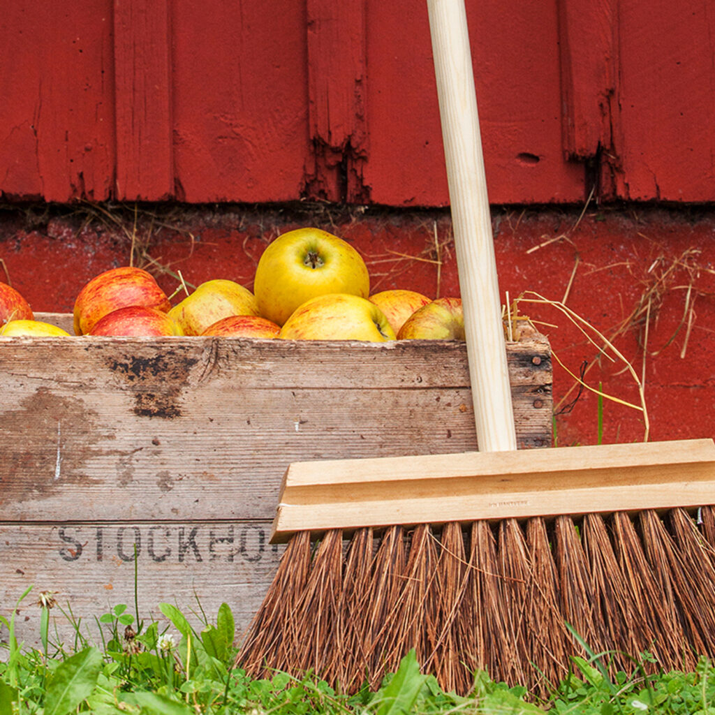 Få bort smulorna från bordet i ett nafs med denna lilla borste och skyffel. Vackert och praktiskt bordsborstset i oljad bok med borst av tagel, handdragen.