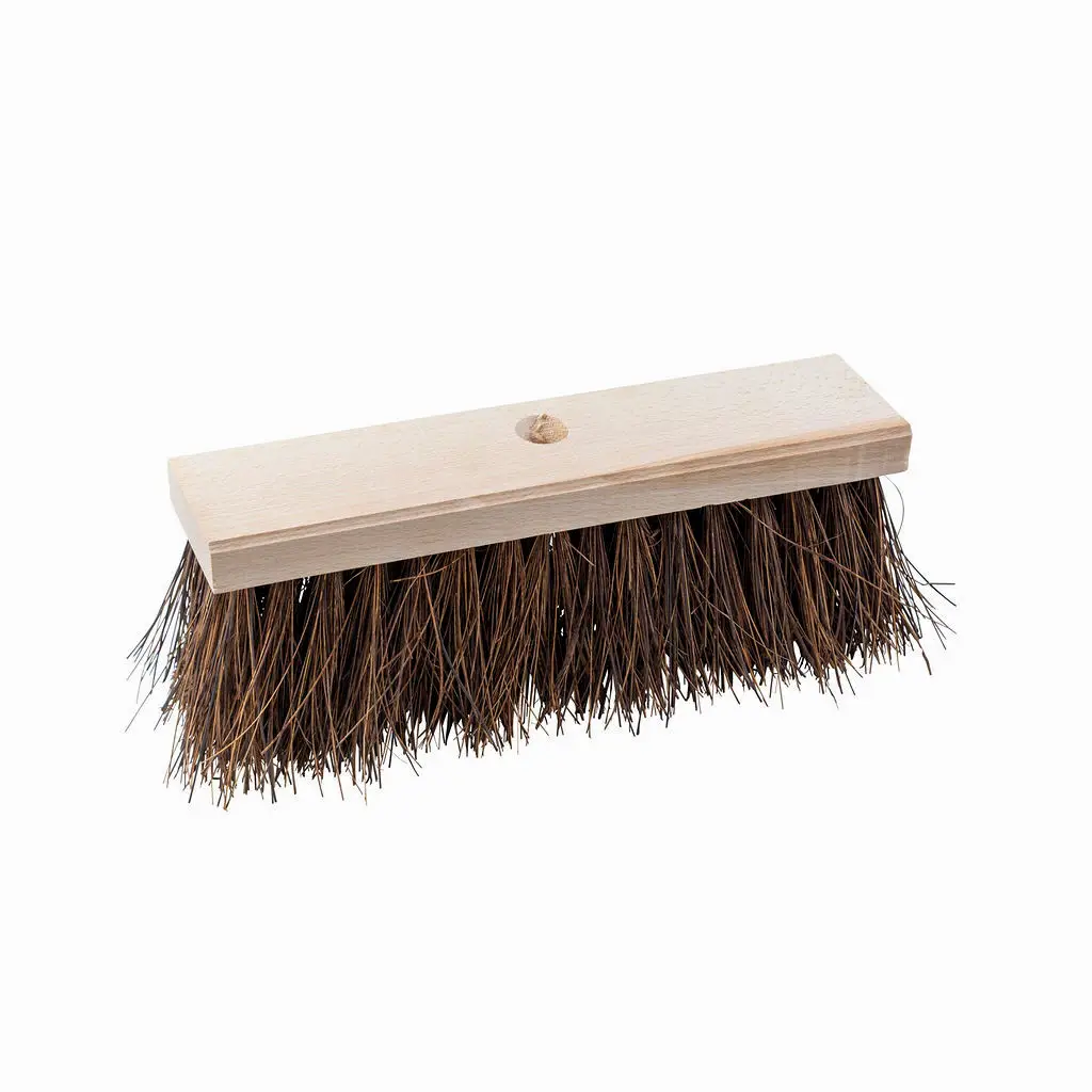 Borsthuvud i piassava av traditionell typ i trä med brun naturborst. För egen montering på skaft.