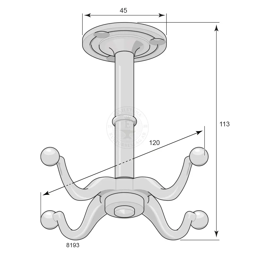 Smidd takkrok att använda som lampkrok eller annan upphängning i tak i äldre miljöer. Modell med upprullad ände.
