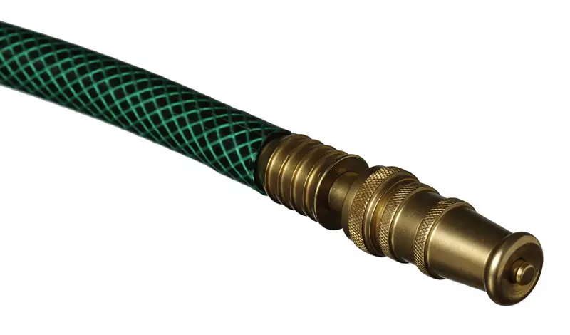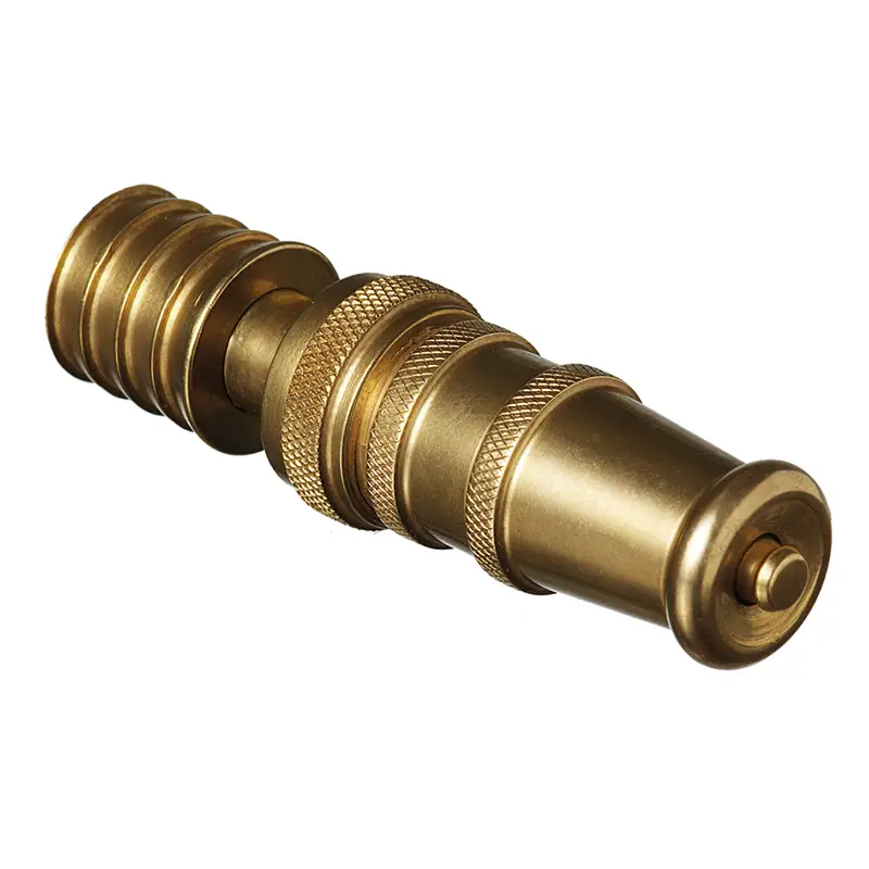 En Rolls-Royce för trädgården är detta strålmunstycke i gedigen mässing. Som sätts på trädgårdsslangen – passande slangklämma medföljer – och gör att man kan ställa in vattenflödet från smal stråle till vid dusch. Ljusår från dagens trädgårdsartiklar i plast.