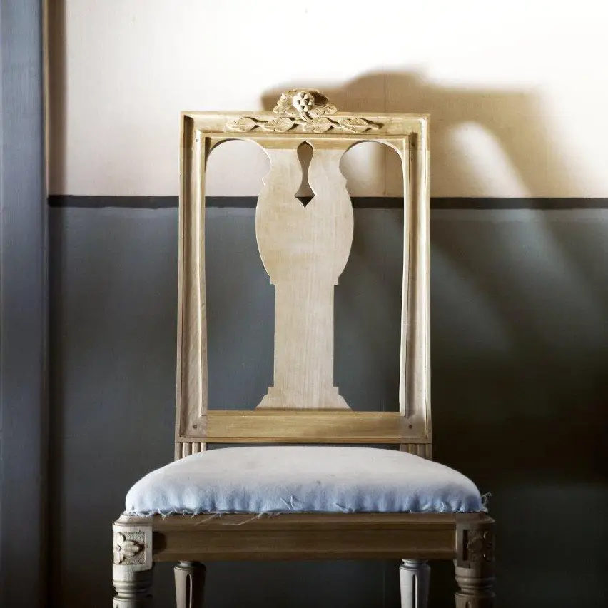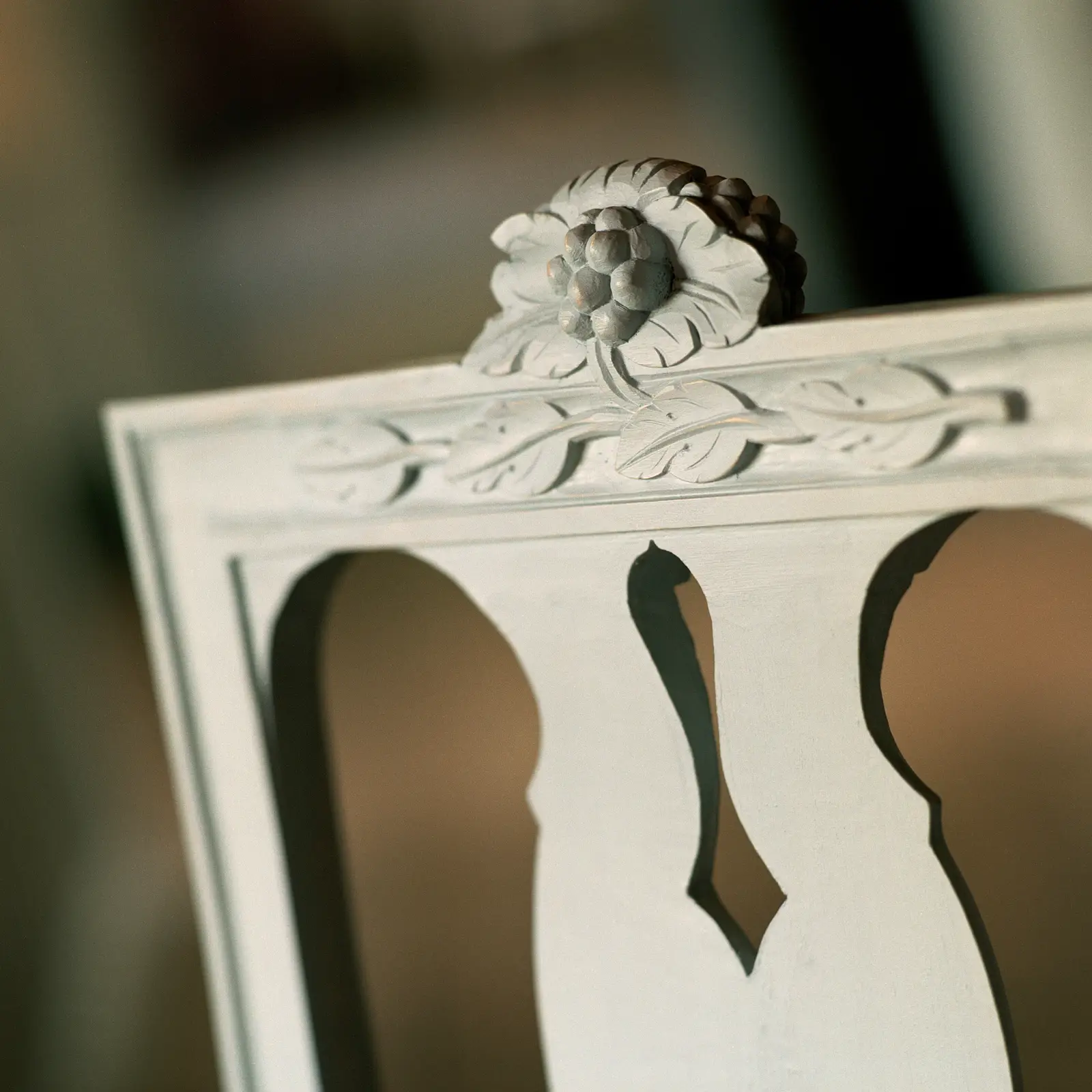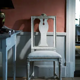 Litet, närmast cirkelrunt bord efter gustaviansk förebild. Bordet består av två halvor, som kan paras ihop, eller placeras fristående. Halvorna hålls samman av små handsmidda kasthakar av järn. Genom att bordet är delbart finns flera användningsmöjligheter: Kaffebord, fönsterbord, blombord, väggbord etc. Bordet är helt handgjort och handhyvlat med profilerad kant på skivan, rund sarg och fyrkantiga, avsmalnande ben. Benen hålls samman av ett fotkryss. Bord av det här slaget är ofta målade i ljusgrått eller engelskt rött.
