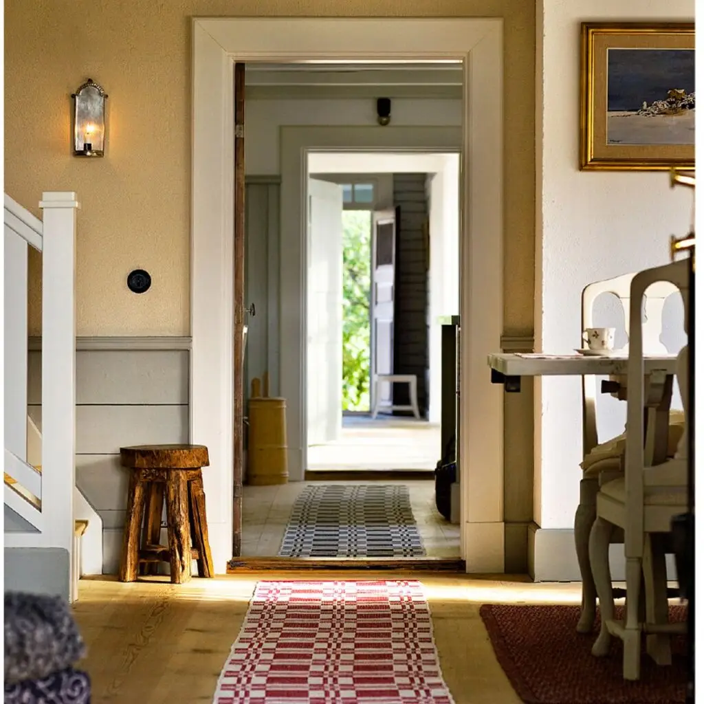 I en second handaffär i Dalarna hittade vi en gång denna glesripsmatta från tiden runt sekelskiftet 1900. Mattan är klassiskt rutmönstrad med mattvarp i två kulörer och med inslag av gamla, väl tvättade, vita mattrasor i bomull. Typen är mycket speciell, genom att den kombinerar ripsmattans ljusa elegans och effektfulla rutmönster med trasmattans stadiga och rustika karaktär. Glesripsmattan passar därför både i enklare och finare sammanhang och kan användas både som sommar- och vintermatta.