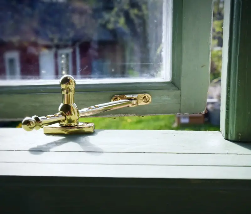 Vädringsbeslag för utåtgående fönster i gedigen klasssisk modell. Stegvis öppning och barnsäker.