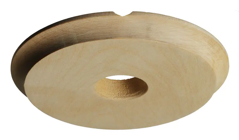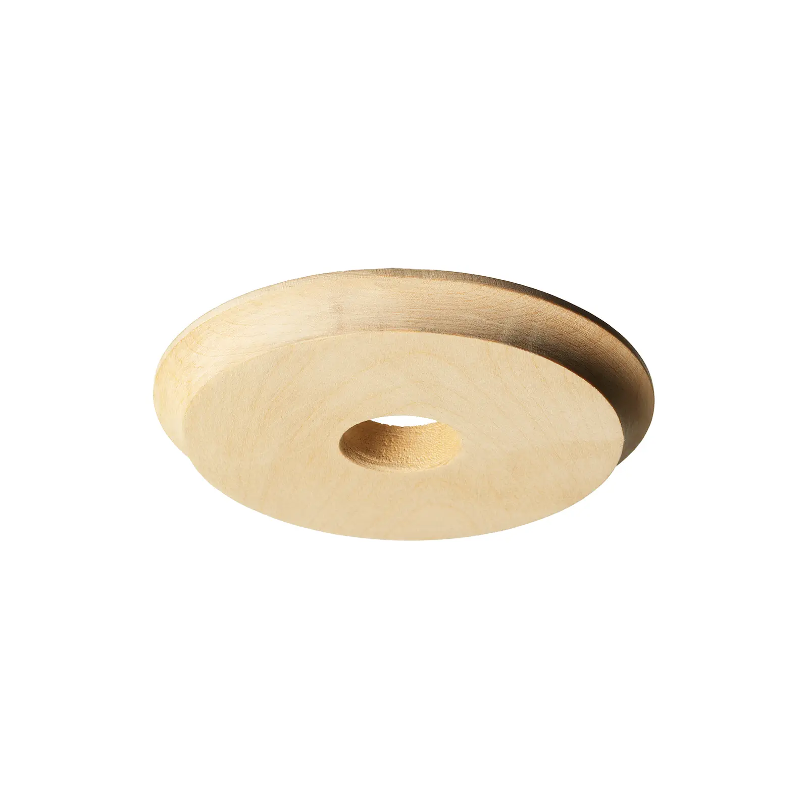 Vanlig detalj under det tidiga 1900-talet som underlag för väggströmbrytare, vägglampor mm. Speciellt bra till putsade tak och väggar, men fyller även en stor praktisk och estetisk funktion om man vill montera en lampa eller strömbrytare på underlag av tex pärlspont. Förborras. Fästet skall målas vitt för vitt tak och svart för väggströmbrytare.